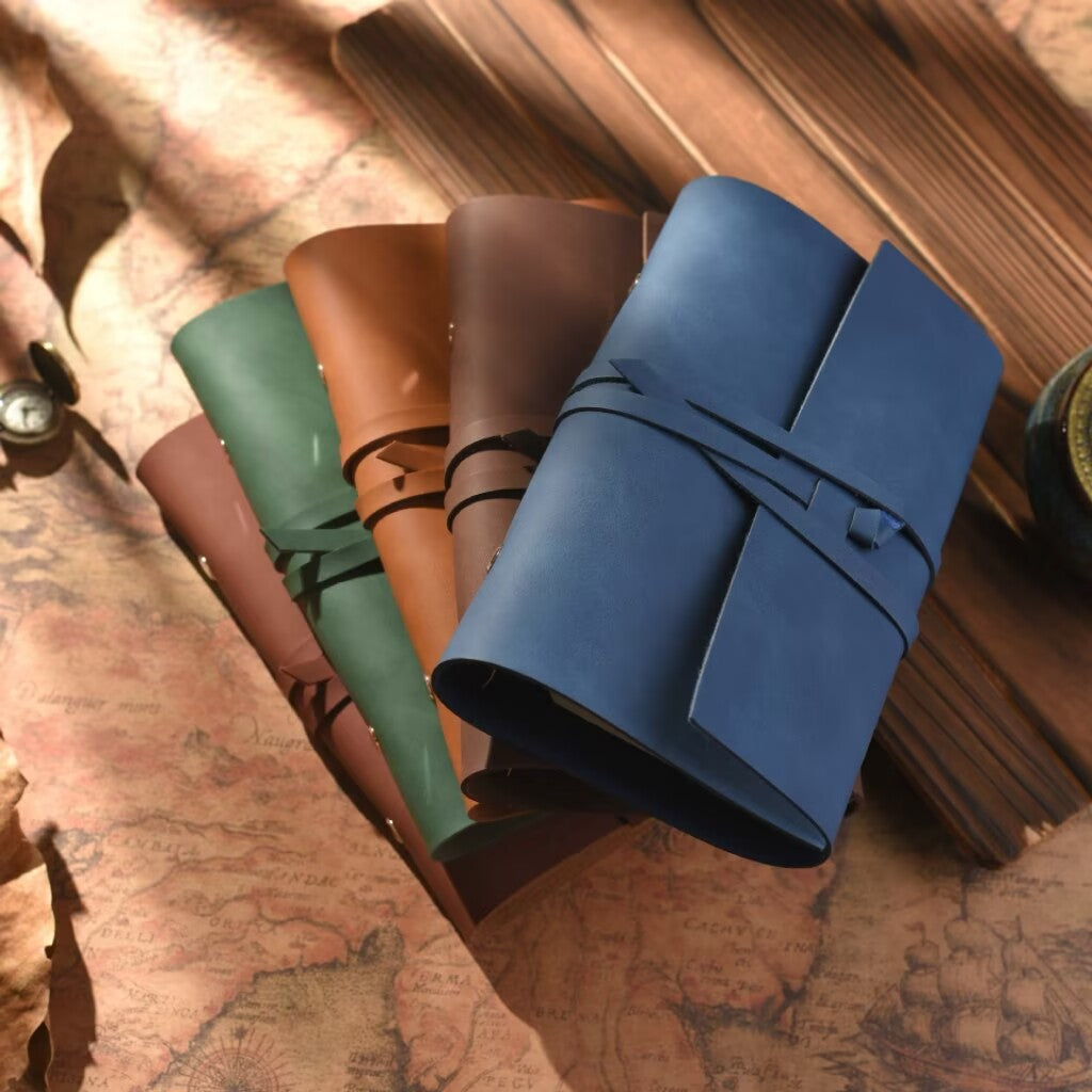 This travel notebook 12x19cm notebook boasts a smooth PU cover and a neat tie closure, offering two inner page choices: lined or blank.