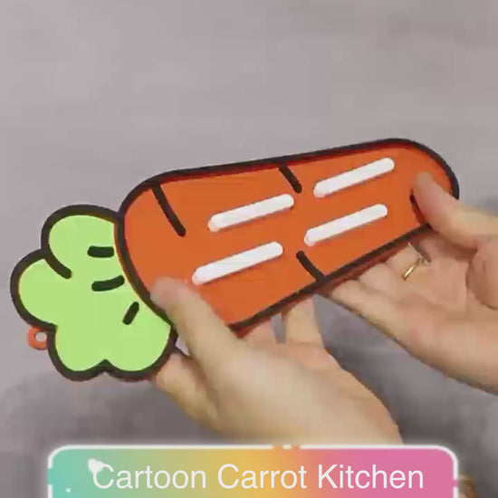 Apolo Prime's adorable carrot-shaped silicone kitchen lid holder! Made of soft silicone, easy-to-clean, it’s perfect for holding pot lids, spatulas. With excellent heat resistance, it also works as a heat pad under hot pots. Its cute cartoon carrot design comes in four colors, adding fun to your kitchen. The raised edges keep liquids contained, so no mess on your countertop. Functional and charming, it’s a must-have for a lively kitchen!
